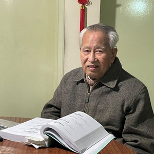 图说:伍汉霖编撰新书时查阅资料 采访对象供图