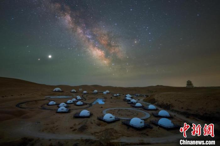 今年暑期,地处腾格里沙漠和巴丹吉林沙漠之间的甘肃武威市民勤县“摘星小镇”露营经济也“火了一把”。当地工作人员刘鸿霞介绍说,小镇的夜晚,人类肉眼可见的星星差不多是6000颗至8000颗,游客置身其中便能够感受到栖身银河系、漫步苍穹中、手可摘星辰的无限神秘和美妙,目前已吸引十余万人次“置身其中”。