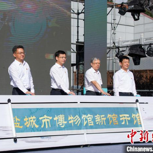 中新网盐城9月16日电(顾名筛)16日上午,具有60年历史的江苏盐城博物馆新馆开馆。这座讲述“天下盐城”千年风华故事的综合性博物馆,珍藏着大批与“盐之城”“海之韵”“水之秀”有关的历史文物,包括以新石器时代刻划纹陶壶、隋代莲瓣纹八系罐、宋元切块盘铁为代表的多件国家一级文物。