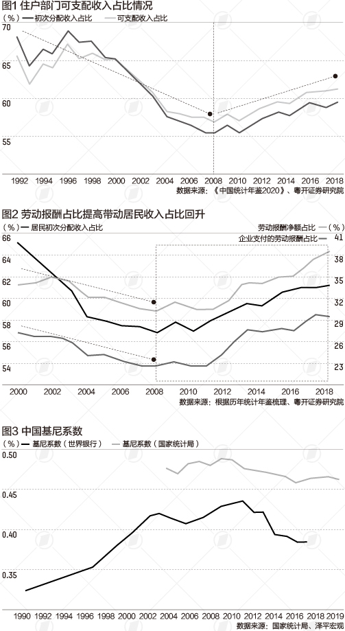 粤开证券研究院副院长罗志恒告诉第一财经,2018年以后,中国居民可支配收入占比应该继续呈现提高趋势,不过达不到上世纪90年代的最高值。