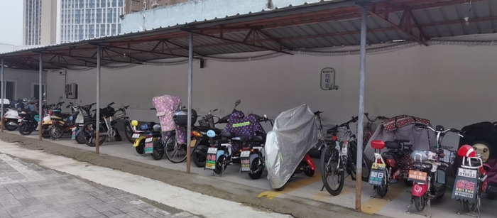 记者看到,紧贴院墙长长的一溜儿,是今年4月完工的开放式车棚。除了停放自行车,还有一片固定区域用来停放电动车。20个充电位可满足居民需求,价格为1小时0.5元。有了充电区域,加上物业巡视,长期以来的飞线充电问题迎刃而解。
