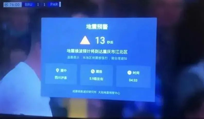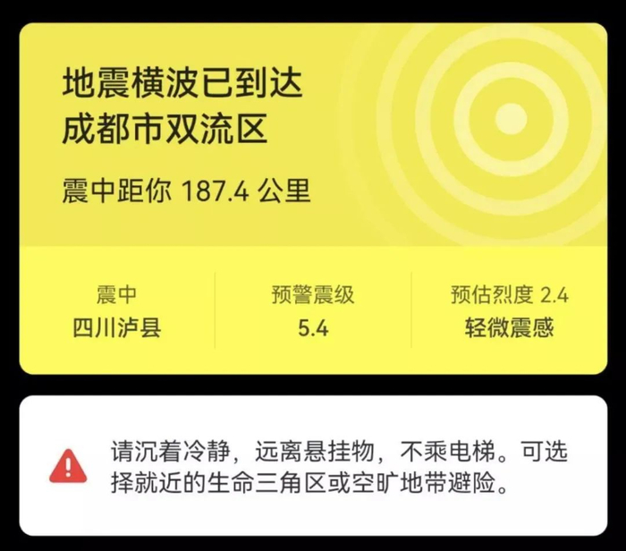 在此次泸县地震中,四川地震烈度速报与预警系统震后5秒在当地部署的转发平台和终端发出预警信息,发挥了较好的减灾实效。