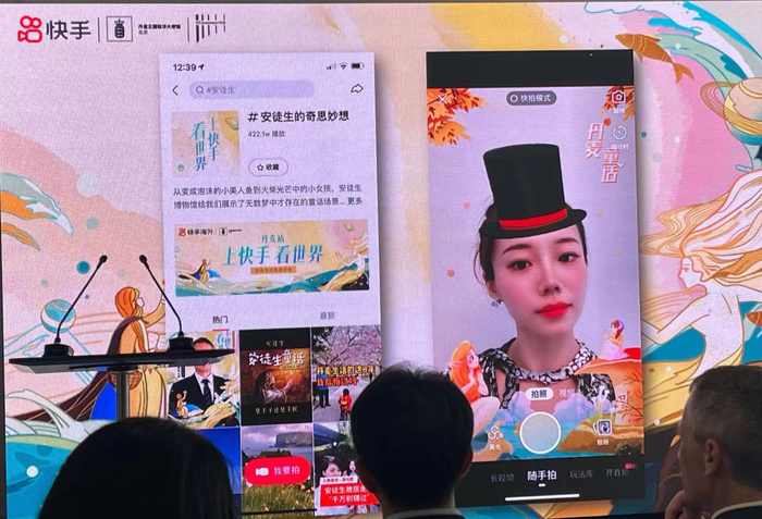 同时,用户还可以发挥想象力进行与安徒生童话相关的内容创作,通过发布记忆最深的安徒生故事、童话朗读、童话的现代理解、童话表演等内容的短视频,参与线上短视频征集活动和幸运抽奖。同时,为了增加活动趣味性与用户沉浸感,快手还为此次活动打造了“丹麦魔表”专属特效,用户使用该魔表后,即可戴上安徒生标志性的礼帽。