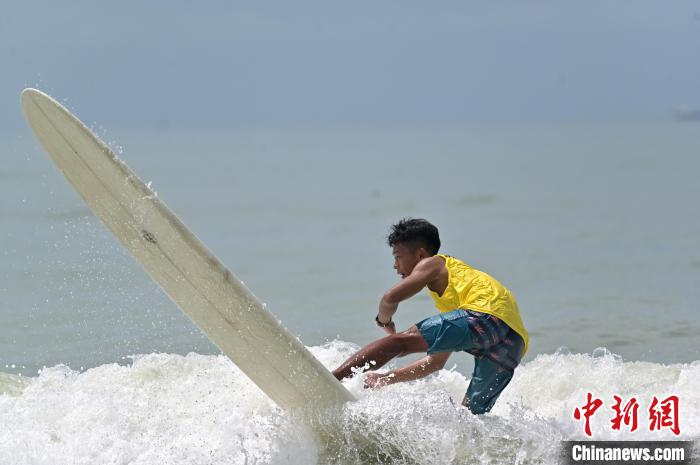 原标题:广西北海:上百名冲浪选手逐浪竞技