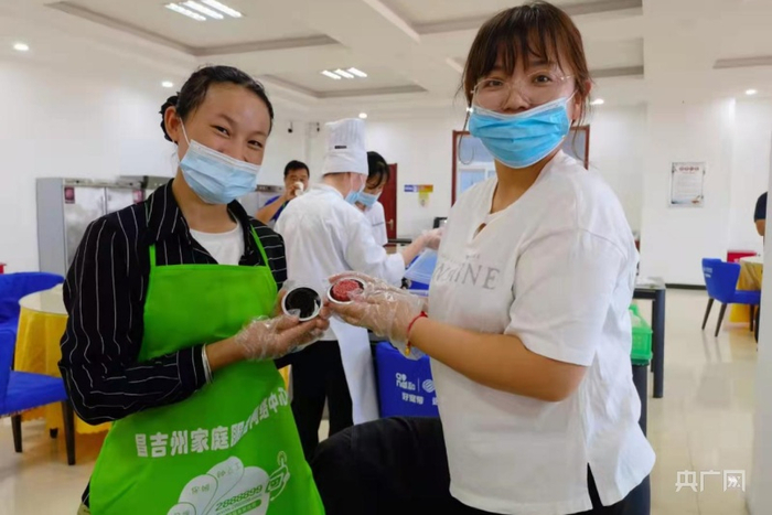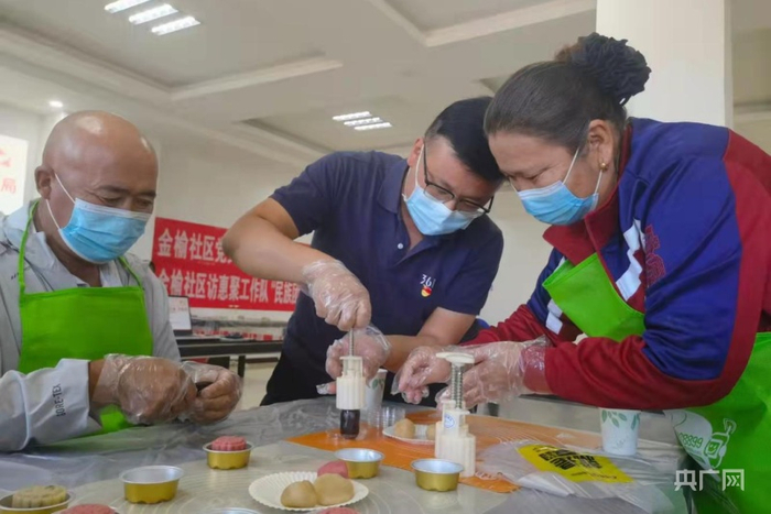 新疆昌吉市榆树沟镇金榆社区干部侯海杰和结对亲戚一同做冰皮月饼。刘钇灼 摄 央广网发