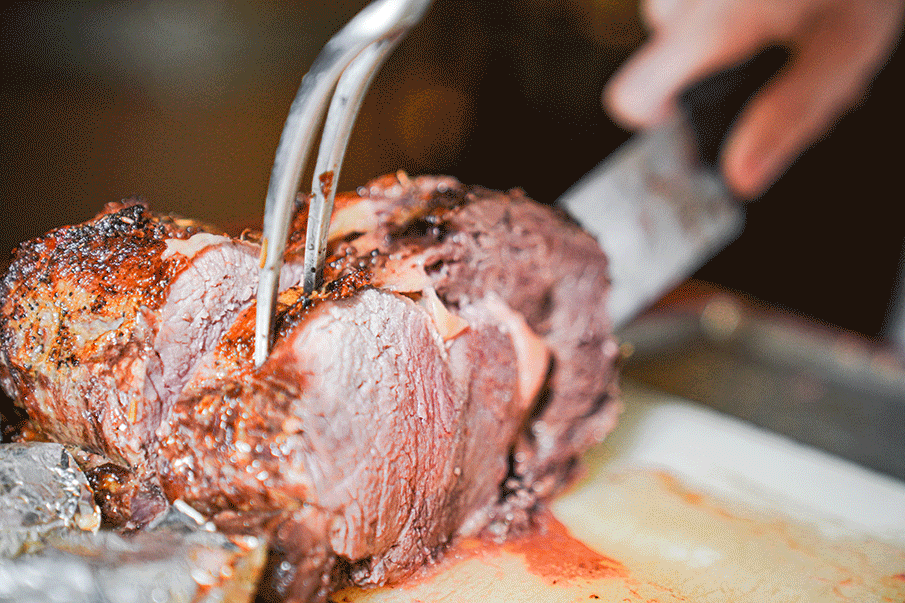 师傅现切现派,最大程度保证了菜品的新鲜口感。大块厚实的战斧牛排在我面前切开,丰盈紧实的肉肉随着师傅的切动跟着摇晃了起来,说不心动是骗人的🤭