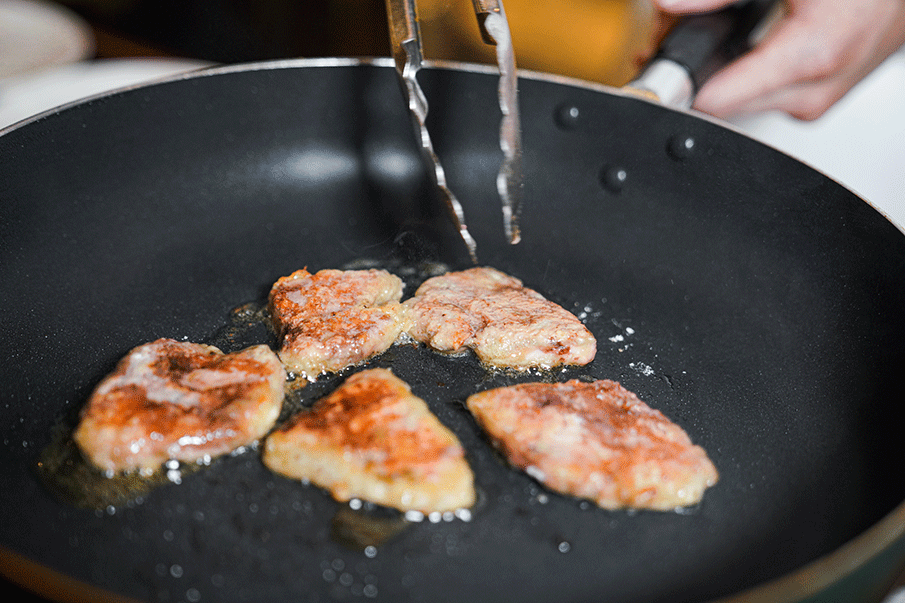 两面裹上面粉的鹅肝,下锅小火慢慢煎至金黄,高温煎的鹅肝表面焦香,内里却温润柔滑,轻轻一口,软嫩的脂肪在口中融化。