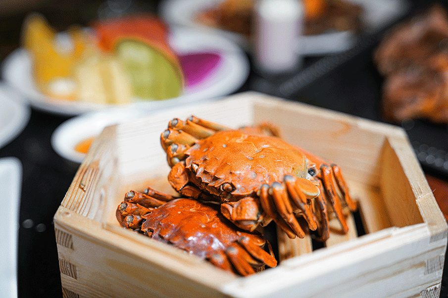 秋风徐徐,唯有“蟹”才能一解老饕们的瘾。蒸熟的大闸蟹热气腾腾,泛着好看的橙红色,上桌每人一份,一份一只,刚好解了那股馋劲儿~