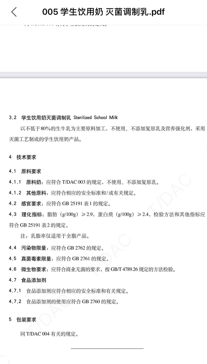 中国奶业协会对学生饮用奶规定的标准