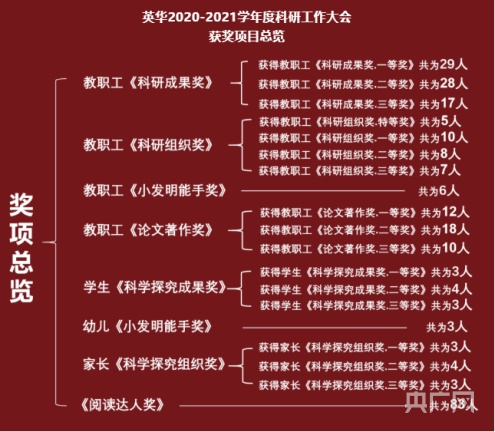 8月27日,英华首届科研工作大会召开,全体英华人围绕“如何落实党的教育方针,落实‘双减’政策,构建高质量教育体系”的议题展开交流研讨。会上,我们还对英华四校区各学部、各部门提交的百余项课题中评审出的253个优秀科研成果进行了表彰,本次大会总体成果报告达20余G。