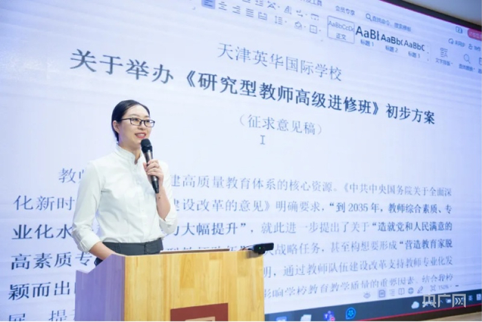 人力资源与教师发展办公室阚薇主任介绍《天津英华国际学校举办研究型教师高级培训班方案(征求意见稿)》要点