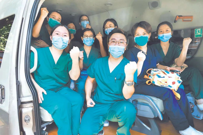 9月12日上午,厦门,市卫健委调派13家公立医院的200名核酸采样人员紧急驰援莆田,帮助当地开展核酸检测工作。大家众志成城,表达必胜信念。(图片来源:视觉中国)