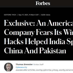 据美国《福布斯新闻》网站17日独家报道,印度被曝曾利用美国公司的黑客技术监听中国和巴基斯坦,该黑客公司随后终止与印度的合同,并表示该公司的黑客技术不允许被当做“火枪”来“攻击巴基斯坦和中国”。