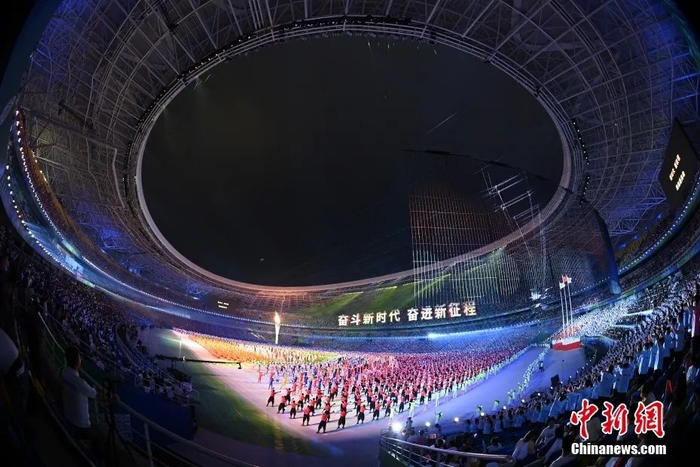 9月15日晚,第十四届全运会正式拉开帷幕,开幕式在位于千年古都西安的奥体中心举行。中新社记者 侯宇 摄