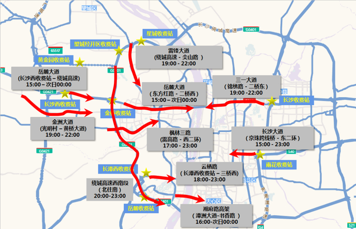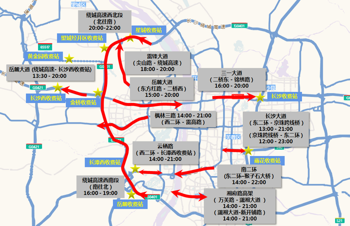 此外,首届北斗规模应用国际峰会及2021世界计算大会目前仍在长沙国际会议中心举行。两大盛会叠加,节前出城高峰,预计三一大道、长沙大道出城压力大,长沙交警会针对性地采取交通疏导和卡车分流措施。