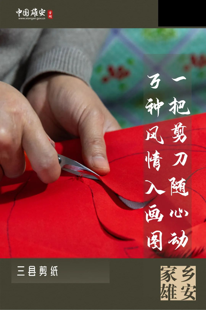 一把剪刀随巧手在纸上曲折蜿蜒,不一会儿,你便看见花鸟虫鱼、山水风光、亭台楼阁、戏曲典故、灯花窗花,甚至还有五谷杂粮、民俗生活……这便是“一把剪刀随心动,万种风情入画图”。剪纸是我们最浓的民族情结之一。雄安三县剪纸各有各的巧,或粗犷豪放、随意大气,或精细秀丽、玲珑剔透,背后承载的却是雄安人共同的记忆与情怀。