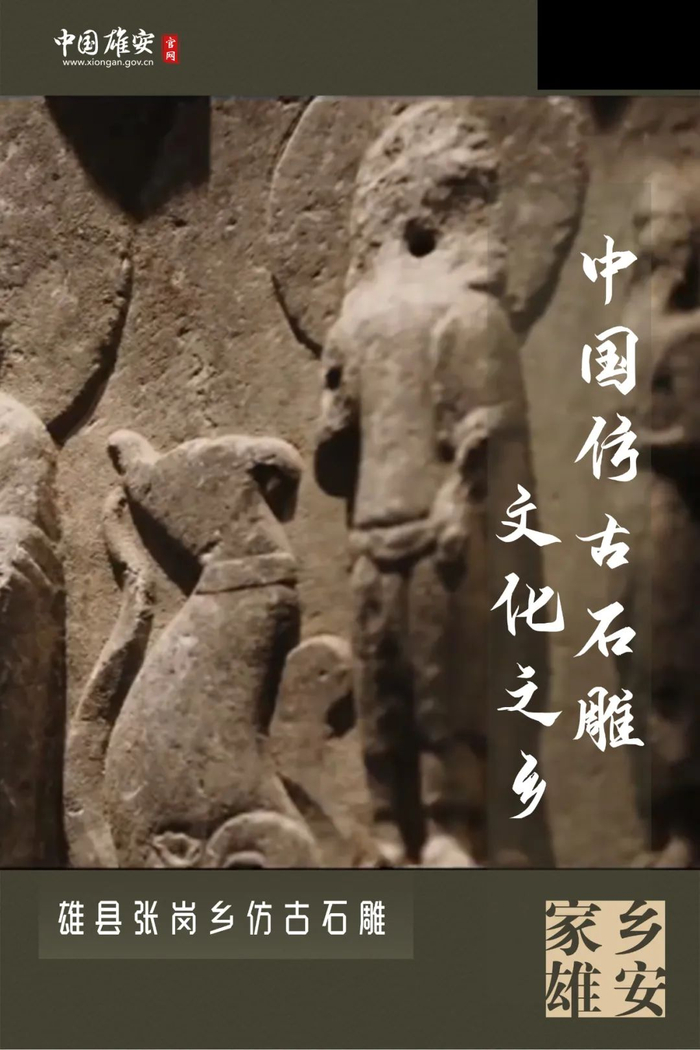 雄县张岗乡被誉为“中国仿古石雕文化之乡”,仿古石雕产业兴起于宋代。这里的仿旧工艺是别处所没有的。一件件不起眼的石雕经过风化、打磨、浸泡、抛光、上漆等十余道做旧加工工序的淬炼,变得滑润精美,极具收藏价值。制作仿古石雕是一门深厚的学问,各朝各代的石雕风格、造型、神态、刀法等都不尽相同。目前,张岗乡仿古工艺品以石雕产业为中心,涵盖仿古瓷器、木雕、竹雕、铸铜等领域。