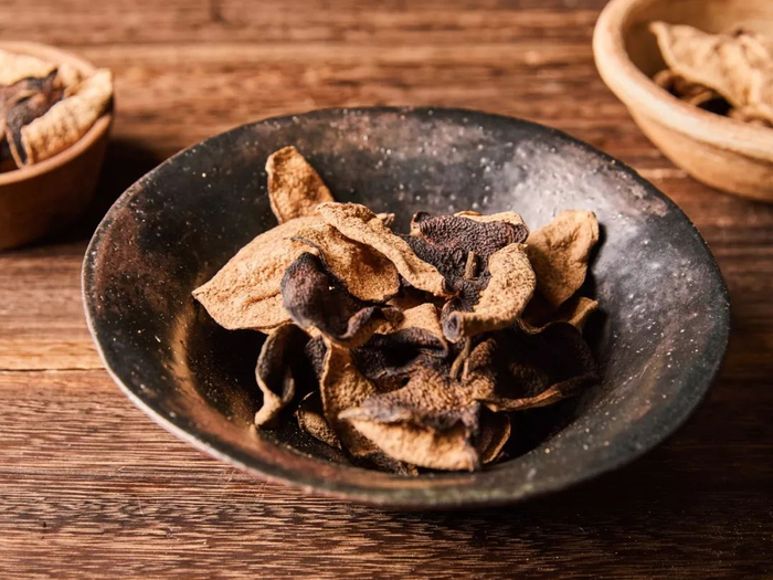 泡过几泡的十年陈皮,最精华的部分已经喝掉,剩下香和甘甜,入菜也不怕浪费。