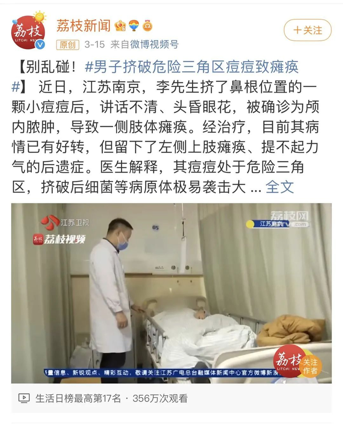 原标题:他挤了一下脸上的痘痘,差点没了命