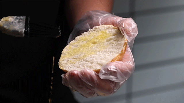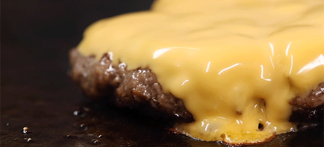 煎熟后的和牛肉饼,带着让人欲罢不能的牛油香气,在它翻面收尾时,也会迎来“牛“生高光时刻,两大片新西兰车打芝“黄袍加身“。这该si的和牛,快停止散发你的魅力!