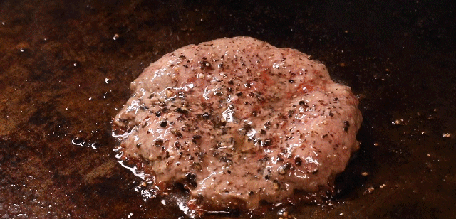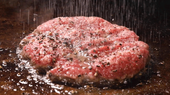 手工捏制的澳洲进口和牛肉,煎制的过程中汁水已经迫不及待地往外流出,滋拉拉冒油!整个空气都弥漫着牛肉的浓厚奶香味。不需要多的调味,只需要简单的黑胡椒就足够了。