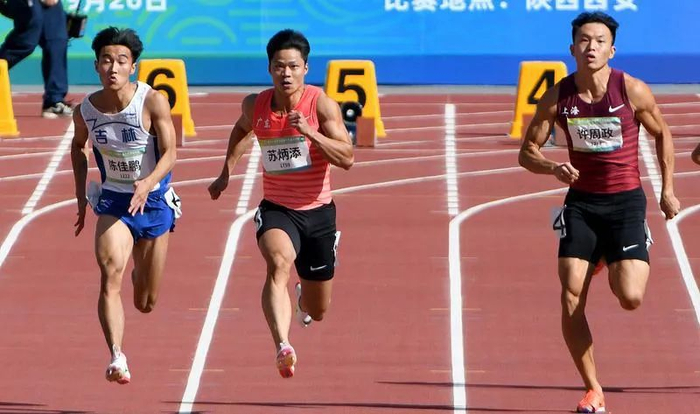 全运会男子百米复赛20日上演,苏炳添第一小组出战轻松跑出10秒06位居小组第一。同组的谢震业跑出10秒25位居第二,广东小将严海滨跑出10秒31位居小组第三,三人携手晋级。本届全运会男子百米决赛将于21日晚间进行。(记者 王瑞)详情:“苏神”亮相全运赛场!
