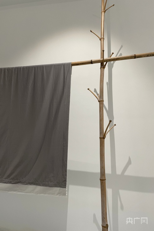 村民晾衣服的竹竿挂上自家民宿的时新床单,是正装修着民宿的女老板小鱼的作品,她告诉记者:“在我们生活与经营的院落里,希望有能够晾晒的简易装置。因为床品在洗清洗烘干后,天气好再晒一晒,那就会有阳光的味道了。想象用潺潺的溪水漂洗,然后用这个竹竿晾晒,让客人感受到温暖和美好。”策展人说:"这样语言就是诗,把这诗的语言用视觉形式呈现就是艺术"。