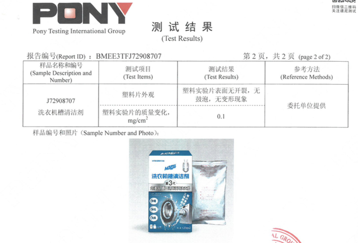 这款清洗剂中还加入了金属保护剂和泡沫调整剂,相比会腐蚀金属槽体的传统清洁剂,它能减少对洗衣机内筒的损耗,在清洗的同时保养洗衣机。
