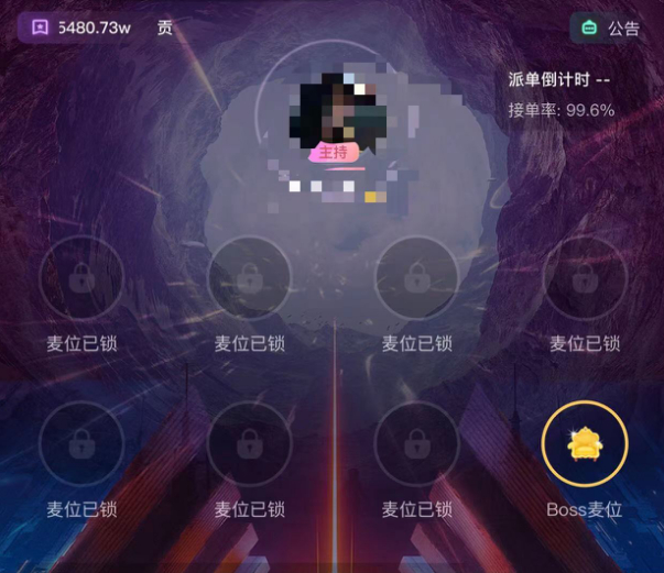 这部分的运营模式并非用户自主点单,而是以“派单厅”的模式,派单厅里有1个主持位、一个BOSS位以及6-8个上麦位,BOSS也就是陪陪们口中的“老板”,上麦位指的就是陪陪。