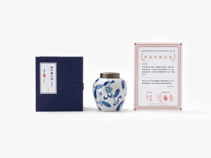 包装内还配有一个景德镇陶瓷茶叶罐,手工绘制青花,艺术欣赏价值高。