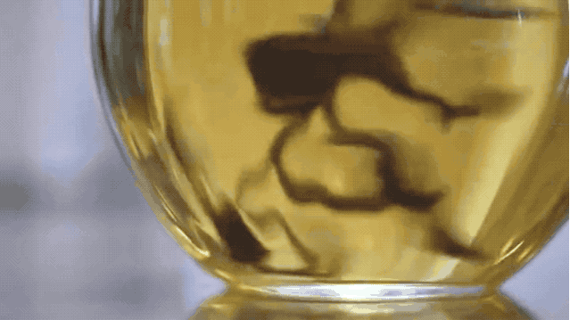 用75~85℃的水温冲泡,汤色清澈明亮,呈漂亮的琥珀色。倾倒出汤,如琼脂般油润的蜜汁坠入杯中,翻覆间竟淌出了袭人的花果香。