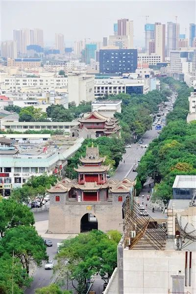如今,走在解放路,会有一种时空变幻的感觉。刚从古建筑脚下走过,抬头却看见高耸的摩天大楼。
