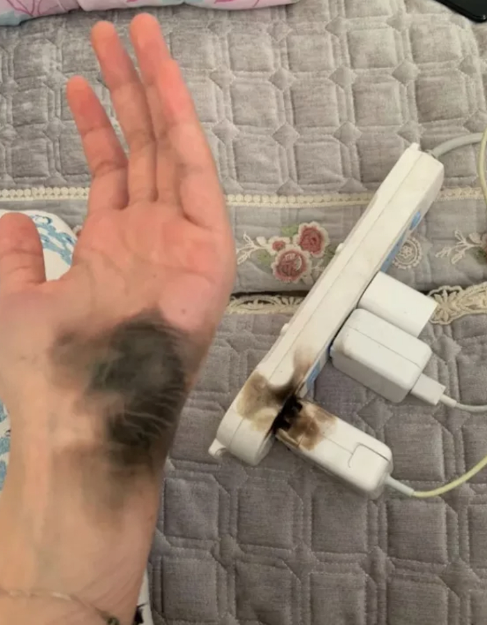 小心!一女子这样插插座,手竟然被炸黑?!很多人还不当回事