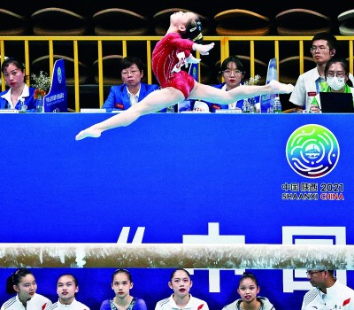福建队14岁的邱祺缘在平衡木项目上超越浙江队管晨辰,以6.400的难度分和8.200的完成分拿到了这个项目的全场最高分14.600分。管晨辰在2020年全国体操锦标赛女子平衡木决赛中,曾以14.933分获得冠军;在2021年中国体操女队第三次东京奥运会选拔赛平衡木项目比赛中,又以15.366分获得冠军;在东京奥运会体操女子平衡木决赛中,以14.633分成功为中国斩获金牌。但在东京奥运会上,她的膝盖部位就贴着胶布,到十四运会时,还是伤病未愈,未在比赛中取得理想的成绩。