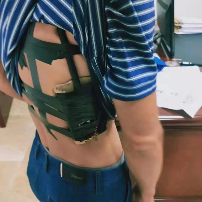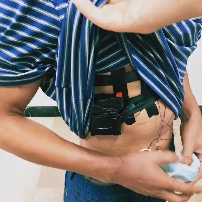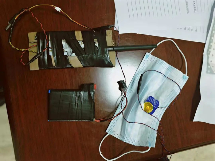 随后,民警在陈某身上发现了用来作弊的信号接收器、电池、无线耳机,以及贴在口罩内侧的摄像头。