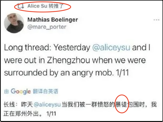 而后来发生的事,更是让人大开眼界,马蒂亚斯·比灵格和苏奕安这两位外媒驻华记者,居然在外网上发布反华抹黑帖,称郑州市民为“暴徒”。与此同时,他们发布在外媒“德国之声”等平台的报道,也充满了恶意歪曲的不公内容。