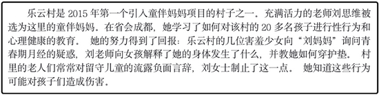 刘思维老师看到这一小段翻译内容后,顿觉情况不妙,感觉这个老外是在“高级黑”,于是便找来了懂英文的亲戚翻译。这一翻译,把刘思维老师吓一跳:文章题目叫《中国留守儿童的困境》,与采访当日的交流内容有着巨大出入,内容中杜撰嫁接、虚构数据的情况非常严重。
