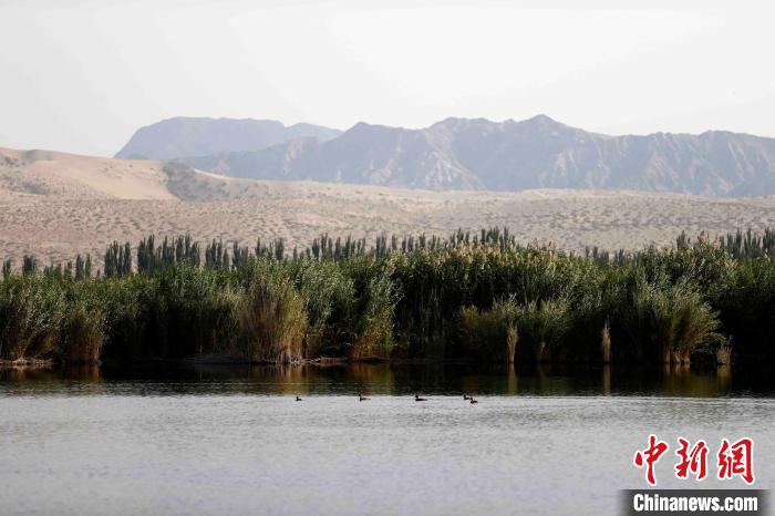中新网新疆博湖9月24日电 (胡嘉琛)湖水中,连片芦苇随风摇曳,在远处沙地映衬下,显得格外有生命力;观光船上游客手端相机捕捉着各种鸟类掠过湖面的精彩瞬间……九月的博斯腾湖,一幅人与自然和谐相处的图景。