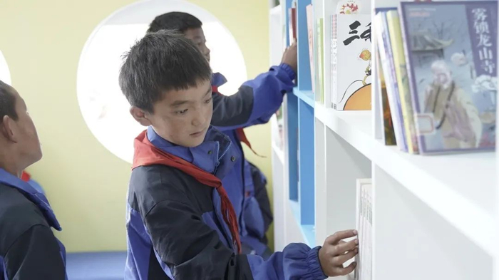 9月23日,长得像个巨大集装箱的蓝黄色菜鸟驿站“驿师驿友”图书馆屹立在校舍一隅,在阳光下格外显眼,这也是菜鸟驿站在全国的首个公益图书馆,而普惠教育依然是大凉山孩子改变现状最快捷的高速公路。