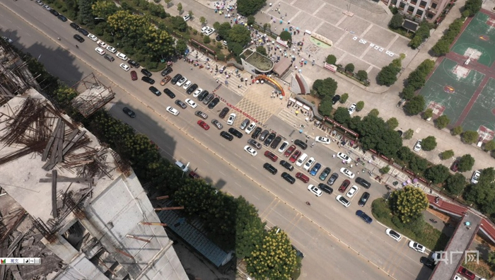 烂尾楼对面是星星实验小学。楼顶无序的建材垃圾也是非常严重的安全隐患 (央广网发。视频截图)