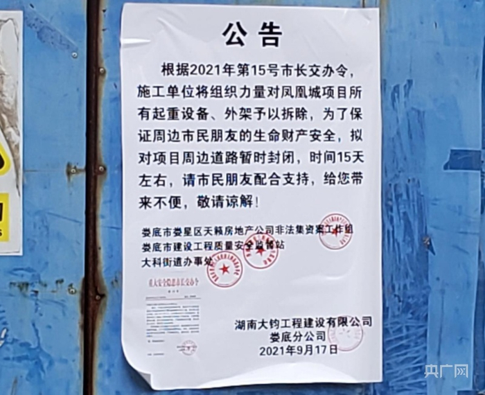 9月17日,娄底市人民政府发布了市长交办令,要求限期清除“天籁·凤凰城”所有安全隐患。
