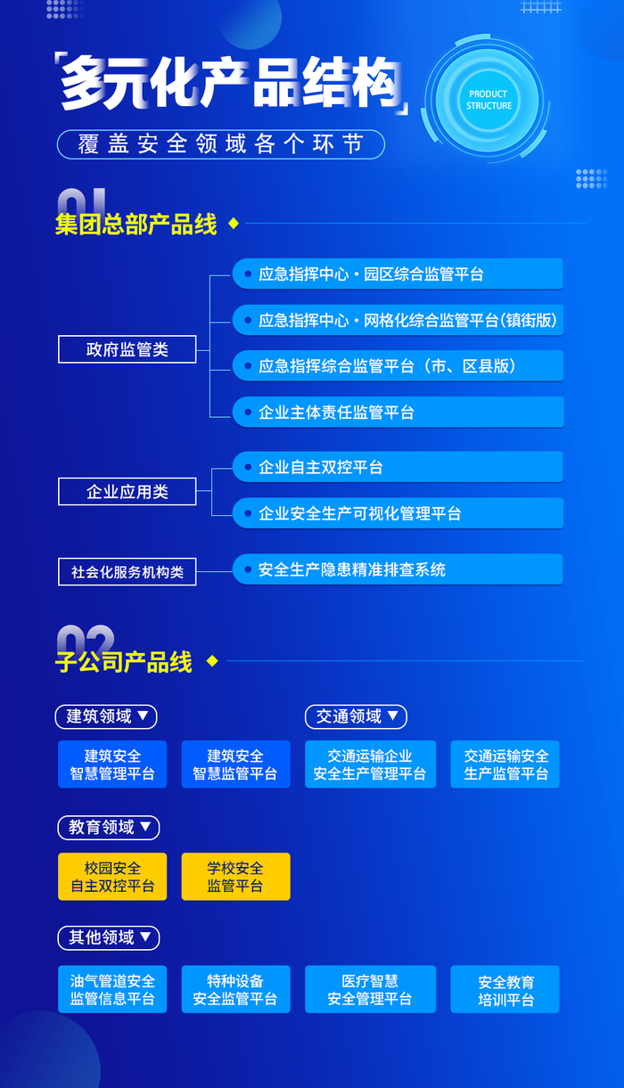 展通集团下设了展通精算、展通安培、展通嘉众、展通未来、展通科信等多家子公司,匠心打造展通“1+N”产品计划,全线拓展交通、教育、医疗、建筑、能源、特种设备、在线教育培训等领域安全信息化产品。