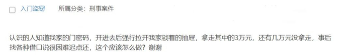 认识的人知道我家门密码,进去后强行拉开我家锁着的抽屉,拿走其中的3万元,还有几万元没拿走,事后找各种借口说自己情况很困难,迟点再还,我应该怎么办?