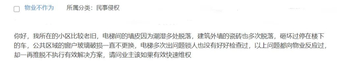 我所在的小区比较老旧,因为潮湿,电梯间的墙皮存在多处脱落,建筑外墙的瓷砖也多次脱落,砸坏过停在楼下的车,公共区域的窗户玻璃破损一直不更换,电梯多次出现问题,也没有好好检查过。以上问题都向物业反应过,物业却一再推脱,不给出有效解决方案,请问业主该如果有效快速维权?