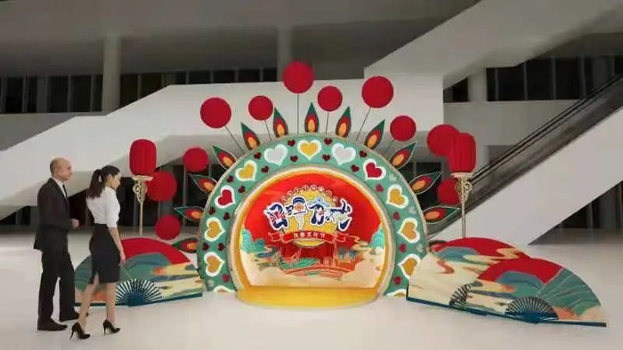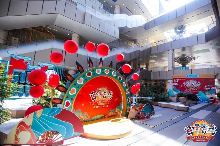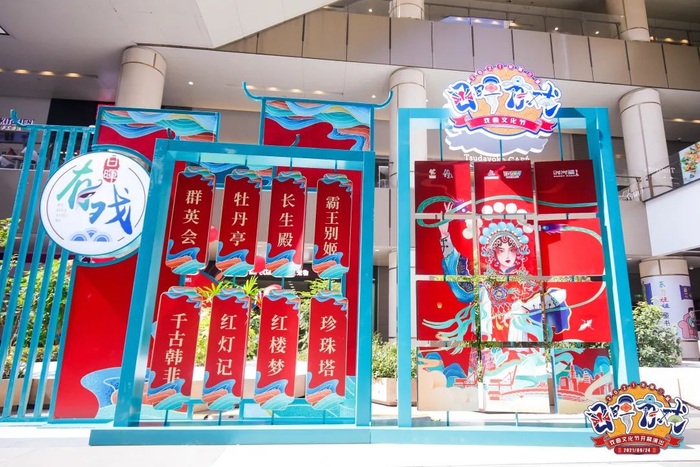 商场中庭布置成了一个大型的戏曲打卡艺术装置。
