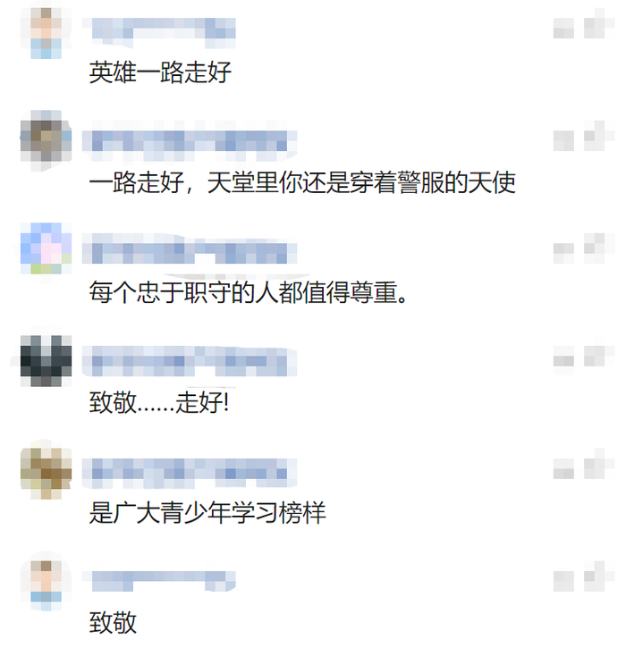在网络上,许多网友看到王屑的故事后,都被他的事迹所感动,纷纷留言送别:“挥泪送别这位英雄局长”“警服是国家的,同时也是人民赋予的”“一路走好,天堂里你还是穿着警服的天使”,一句句真挚的话语让人动容。