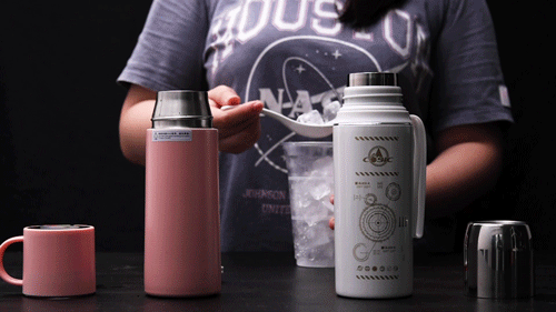 一个小小的保温杯,装上宇航服里的相变材料后,就能将刚煮沸的开水(90-100℃)快速变为适口的温度(40-60℃)。