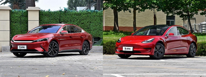 比亚迪汉EV属于前者,而特斯拉Model 3属于后者。