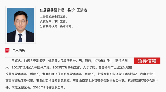 当时公示对象除了周明军之外,还有1979年11月出生的仙居县委副书记、县长王斌达,他是“拟提名为外省设区市副市长人选”。