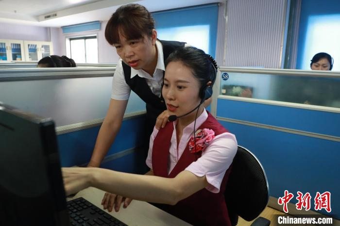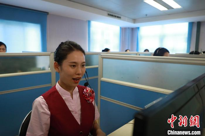 9月26日,南昌铁路客户服务中心客服代表韦薇正在解答旅客问询。 丁波 摄